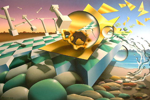 This work appeals to collectors interested in conceptual surrealism, technological symbolism, and imagery that examines progress through order, restraint, and philosophical depth.
